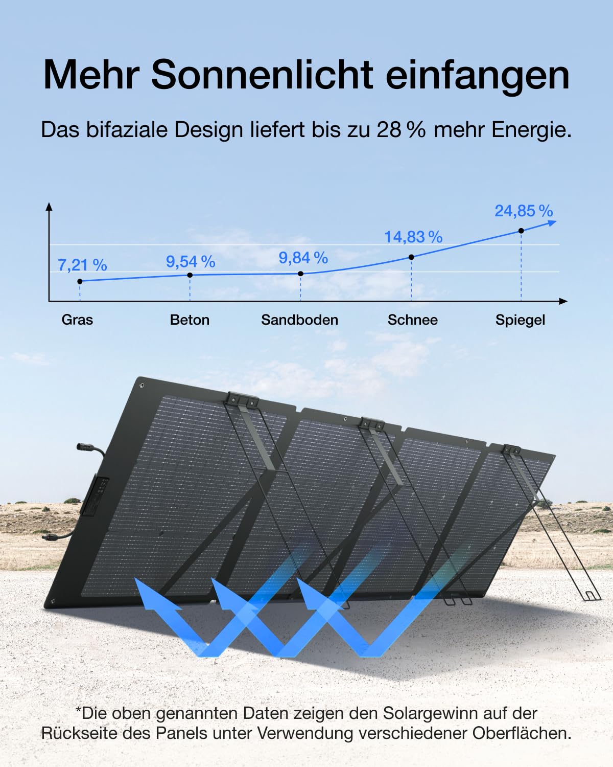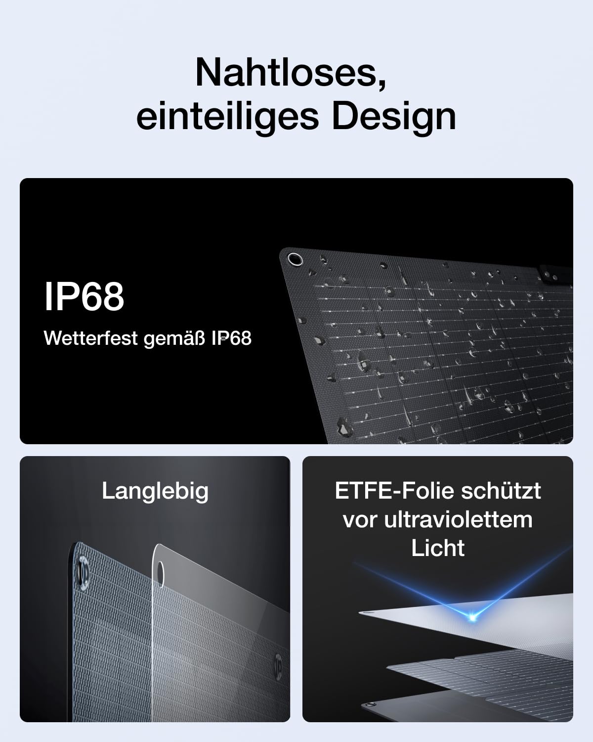• [Saubere, nachhaltige Solarladung] Laden Sie mit diesem leichten, klappbaren bifazialen 220W-Solarmodul Ihre RIVER 2 Pro zu Hause oder unterwegs auf. Das bifaziale Design sorgt für bis zu 25 % mehr Solarenergie als ein einseitiges Modul, sodass Sie die RIVER 2 Pro in nur 4,5 Stunden aufladen können.