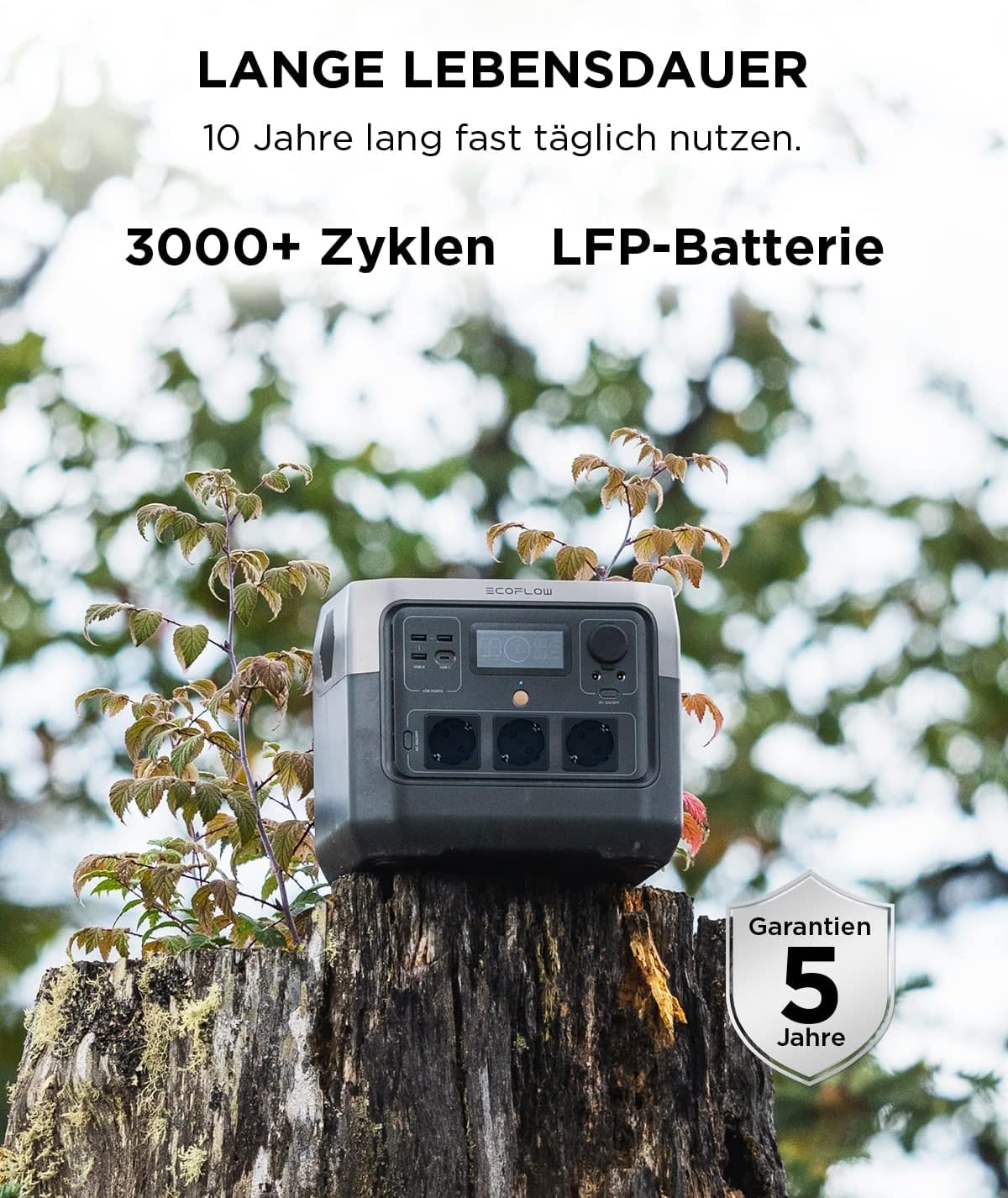 • [Lässt Sie nicht im Stich] Die LFP-Batterie bietet Ihnen über 3000 vollständige Ladezyklen. So können Sie Ihre RIVER 2 Pro Solar generator 10 Jahre lang fast jeden Tag verwenden. Das fortschrittliche Batteriemanagementsystem (BMS) überwacht Spannung, Stromstärke und Temperatur, damit die Batterie langlebig und in gutem Zustand bleibt. Das tragbare 220-W-Solarpanel besteht aus gehärtetem Glas und ist damit 5-mal widerstandsfähiger als vergleichbare Solarmodule. Und dank der Schutzart IP68 können Sie bei jedem Wetter Solarenergie erzeugen.