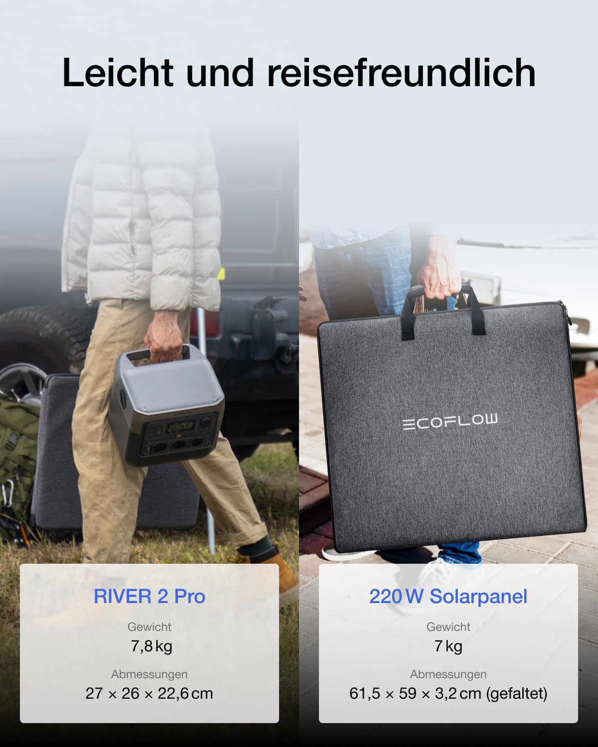 • [Leicht und tragbar] Mit einem Gewicht von nur 7,8 kg ist die RIVER 2 Pro tragbare Power station der ideale Outdoor-Generator für all Ihre Abenteuer fernab vom Stromnetz. Unser kompaktes Solarmodul wiegt nur 7 kg, damit Sie es überall hin mitnehmen können.