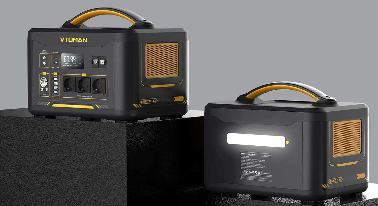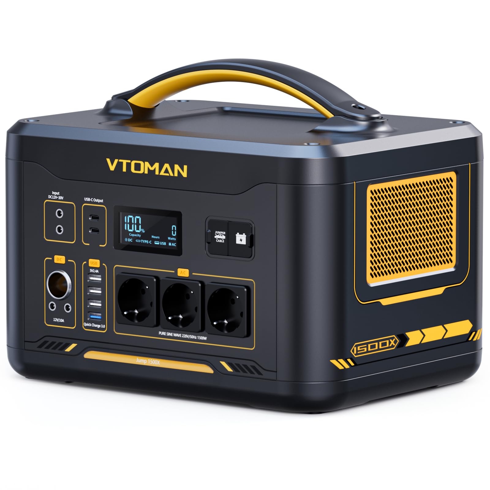 VTOMAN Jump 1500X Tragbare Powerstation 1500W, 828Wh LiFePO4 Solargenerator mit Erweiterbarer Kapazität auf 2376Wh, 230V AC/100W USB-C Schnellladung für Camping Reisen Notfälle Wohnmobil